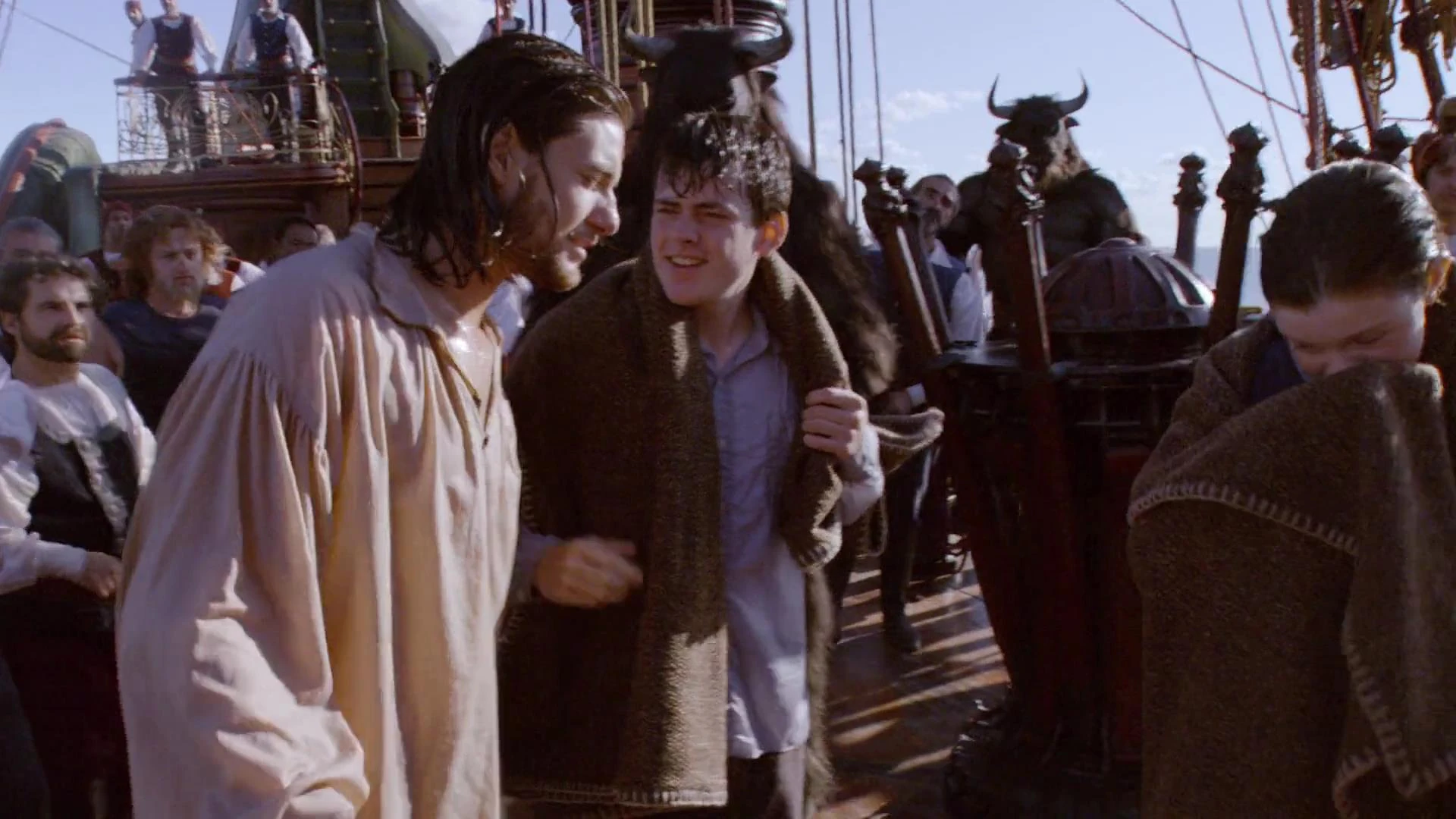 Une fois à bord, Caspian prête des vêtements à ses naufragés et les conduit dans sa cabine personnel où il stocke tous les trésors de la couronne narnienne. De plus, il en profite pour expliquer aux trois enfants la situation à Narnia ainsi que les nombreux objectifs de son expédition. L'après-midi, le jeune souverain partage un moment de complicité avec le Roi Edmund, en effectuant un duel amical.