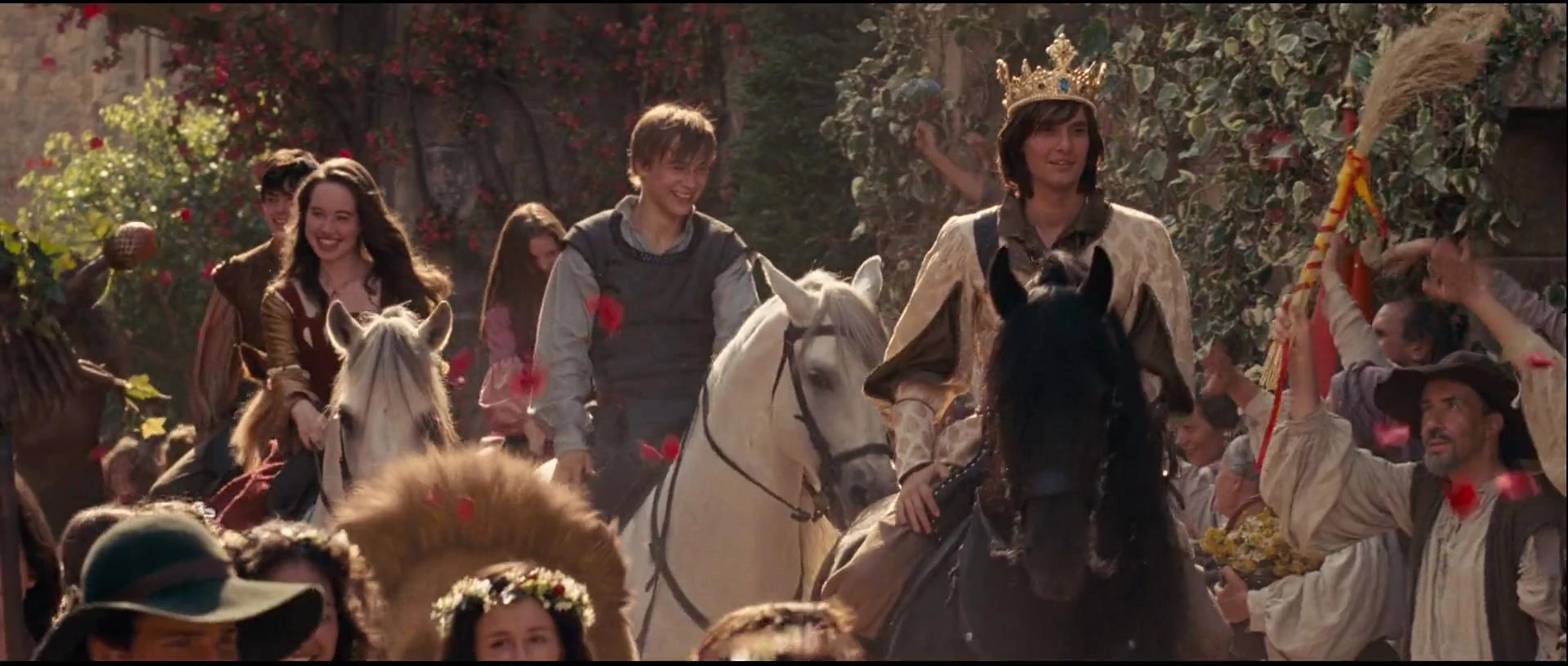 A l’occasion, Caspian est couronné roi de Narnia. Après une longue soirée remplie de festivités, le souverain propose aux Telmarins une nouvelle vie ailleurs, puis vient au tour des Pevensie, qui doivent également retourner dans leur monde d’origine. Avant de partir, Peter confie son épée à Caspian.