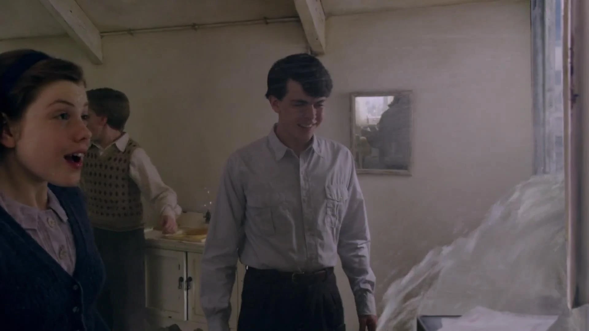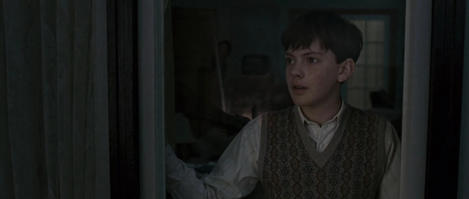 Edmund contemple le raid aérien depuis la fenêtre de sa chambre.