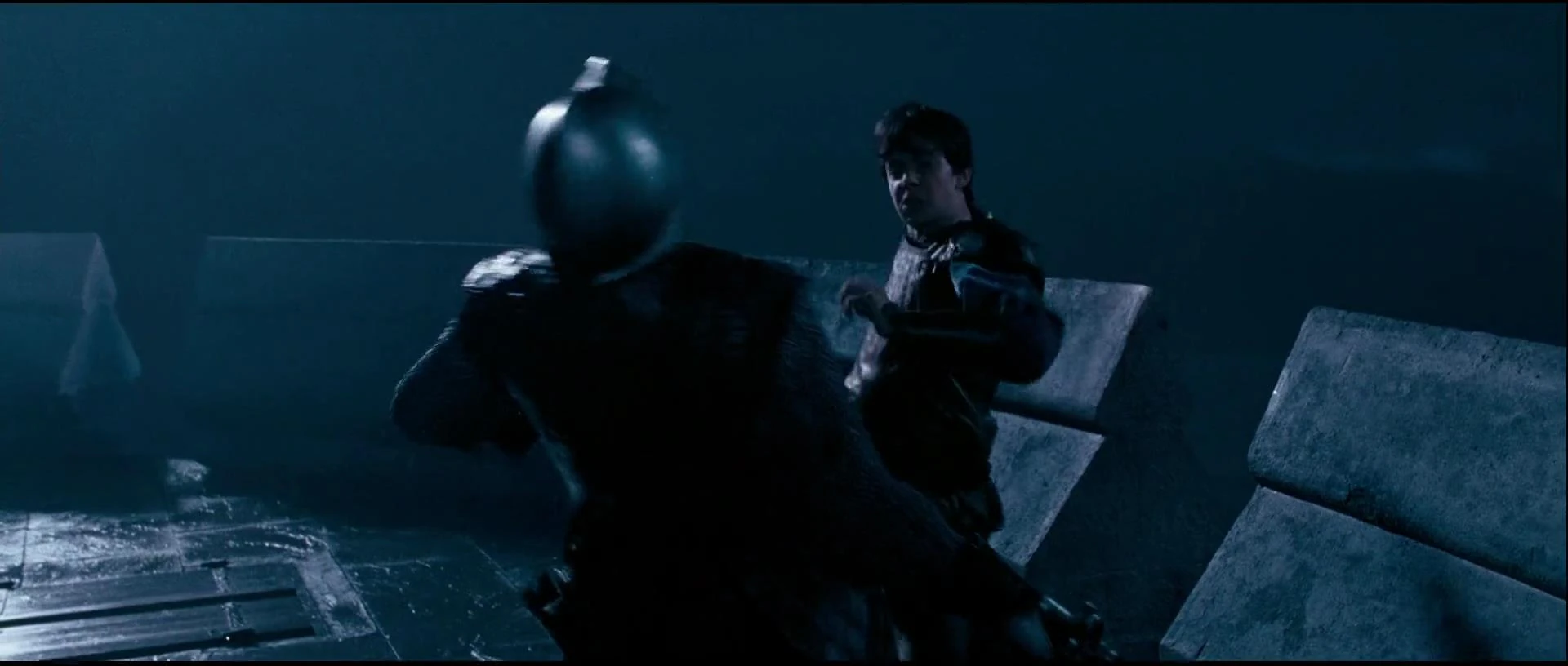 Dans cette embuscade nocturne, Edmund joue deux rôles essentielles : d'une part, il incarne l'éclaireur, d'autre part, il doit avertir les Narniens lorsque la herse est relevée. Afin d'assurer la première fonction, le jeune roi est transporté par un griffon et se poste sur une des tours du château avec sa lampe torche électrique. Toutefois, dans l'inattention, Edmund fait tomber accidentellement sa torche, freinant ainsi le signal d'alerte. Avec les nombreuses embûches, l'attaque nocturne se termine en une victoire telmarine décisive.