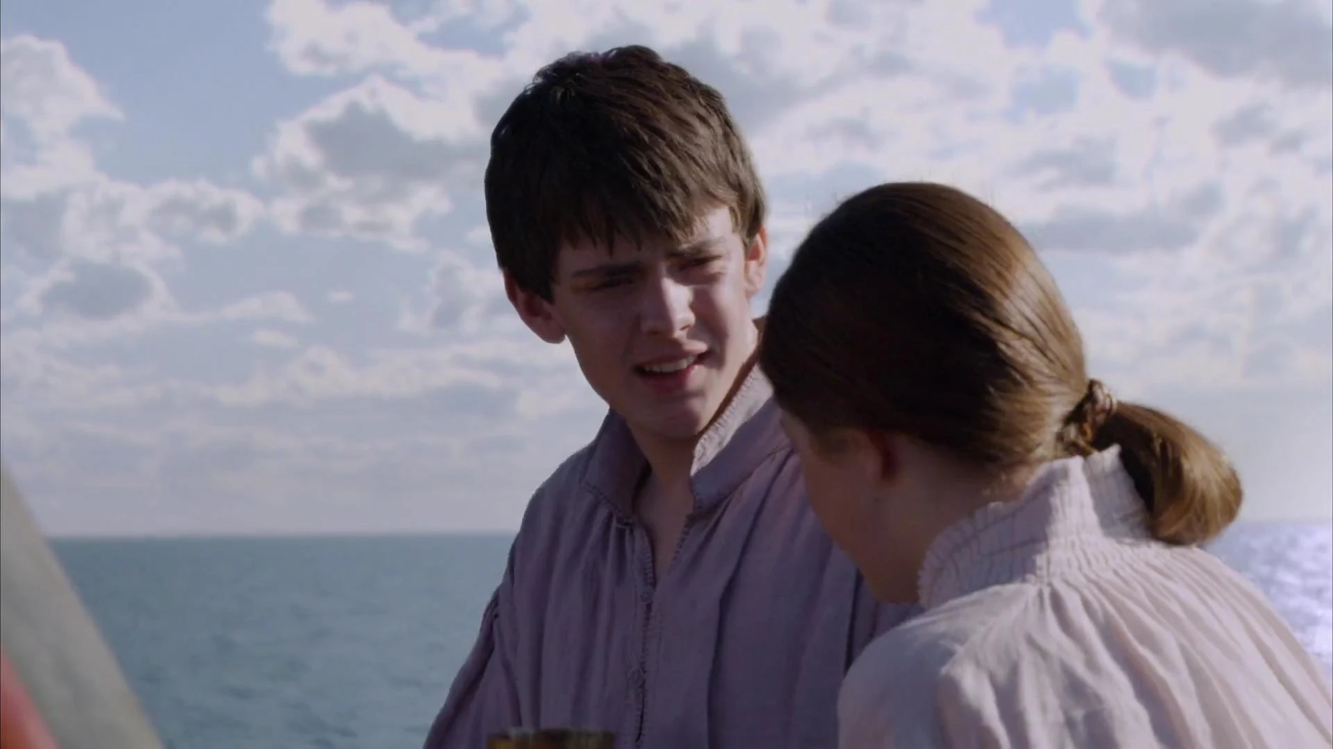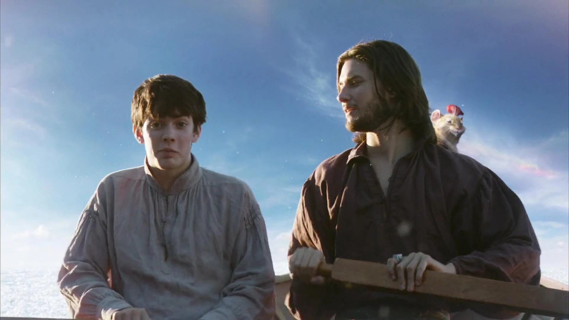De retour chez leur oncle et leur tante, les deux Pevensie lisent la lettre de Susan, envoyée depuis l'Amérique, avant de contempler un tableau représentant un bateau naviguant sur une mer turquoise. Toutefois, Eustache débarque et continue à se moquer de ses cousins jusqu'à ce que de l'eau sorte de l'oeuvre d'art : les trois enfants se retrouvent dans un immense océan du Monde de Narnia.