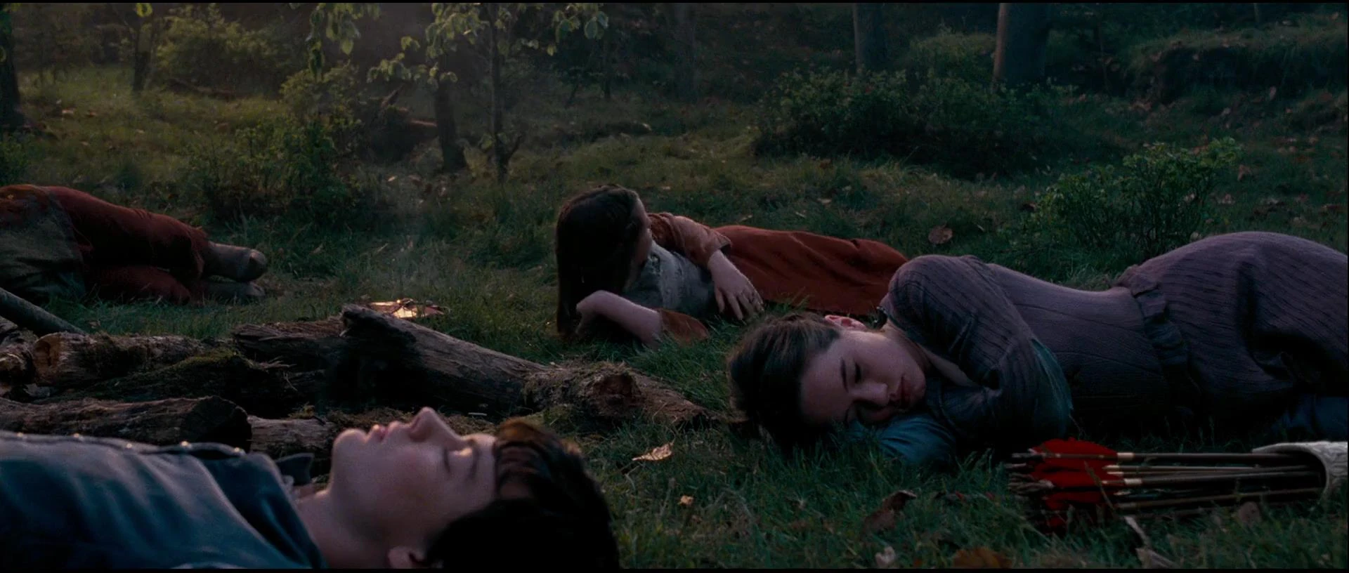 À la tombée de la nuit, les Pevensie et le nain font un feu de camp et dorment pour récupérer leur journée épuisante. À l'aube, Lucy tente de réveiller ses compagnons : seul Edmund accepte de la suivre (version littéraire). En s'enfonçant dans les bois, ils finissent par retrouver Aslan.