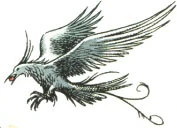 «Внезапно им показалось, что из самого центра восходящего солнца к ним что-то летит. Однако смотреть туда они не могли. Вскоре в воздухе послышались голоса, вторившие песне старика и девушки на каком-то неизвестном, гортанном языке. Потом огромные птицы подлетели к столу и опустились на траву, на мощёный пол, на стол, на плечи и головы, словно выпал крупный снег.»