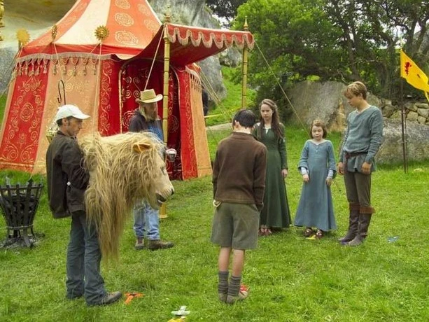 - Когда дети общались в кадре с компьютерными персонажами, кто-нибудь из съёмочной группы зачитывал диалоги за этих персонажей, чтобы молодым актёрам было легче играть свои роли. В случае с Асланом использовался манекен в виде льва или его головы.