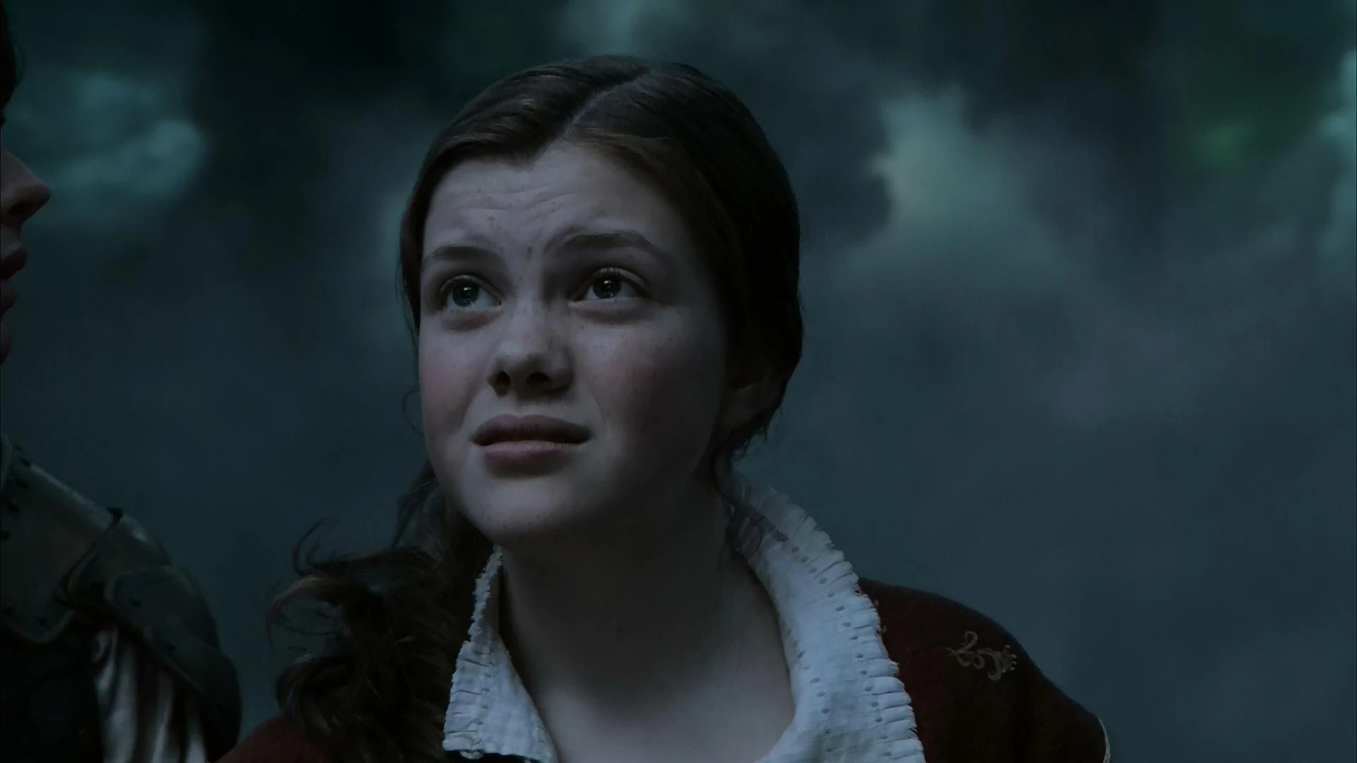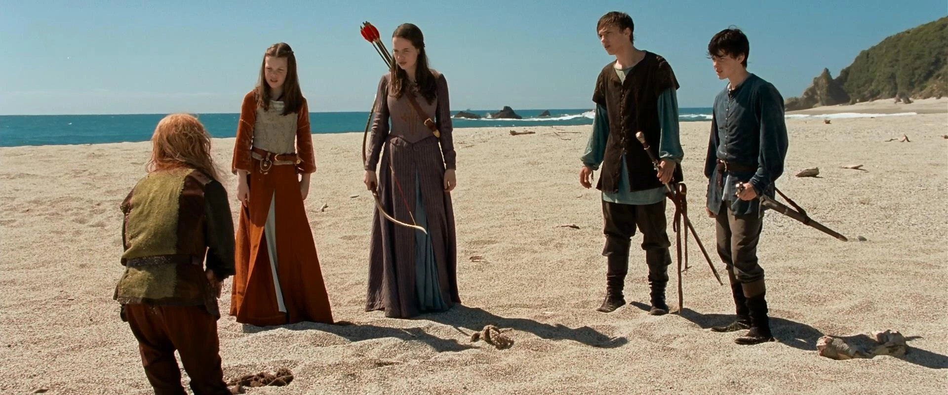 Люси встаёт между Каспианом и Эдмундом на острове Мёртвой воды.