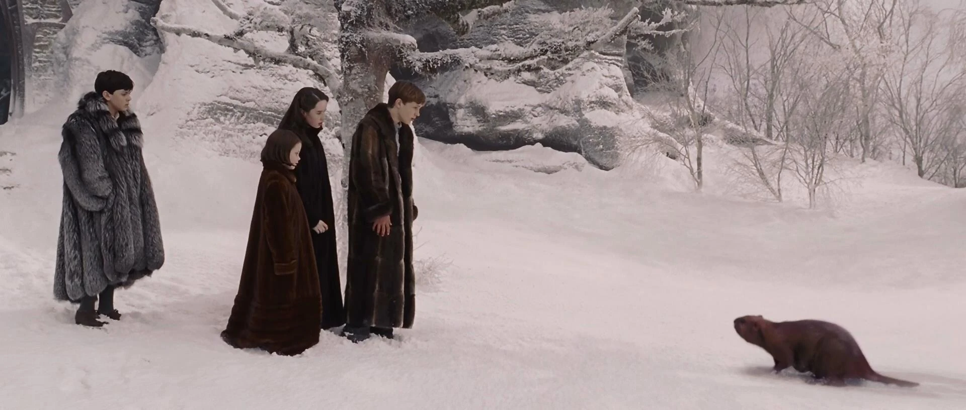 Девочки обогнали мальчиков, но когда малиновка вдруг исчезла, они тоже поняли, что заблудились. Тут Сьюзан заметила какое-то существо за деревьями, и Люси испугалась ещё сильнее. Однако когда Питер понял, что перед ними бобр, она согласилась, что он выглядит хорошим бобром. Дети пошли за ним, и тот привёл их в чащу леса. Здесь мистер Бобёр показал им платок Люси, который получил от мистера Тумнуса, и повёл дальше - к своей плотине. В домике бобров дети, наконец, расслабились, отдохнули и сытно поели. Люси по-прежнему переживала за бедного фавна, и мистер Бобёр убедил детей, что для того, чтобы помочь ему, нужно встретиться с Великим Львом Асланом. Все так увлеклись рассказом мистера Бобра, что только по его окончанию Люси заметила, что Эдмунд пропал. Она призналась, что брат уже бывал в Нарнии в одиночестве, и мистер Бобёр вместе с миссис Бобёр сразу же догадались, что Эдмунд отправился к Белой Колдунье.