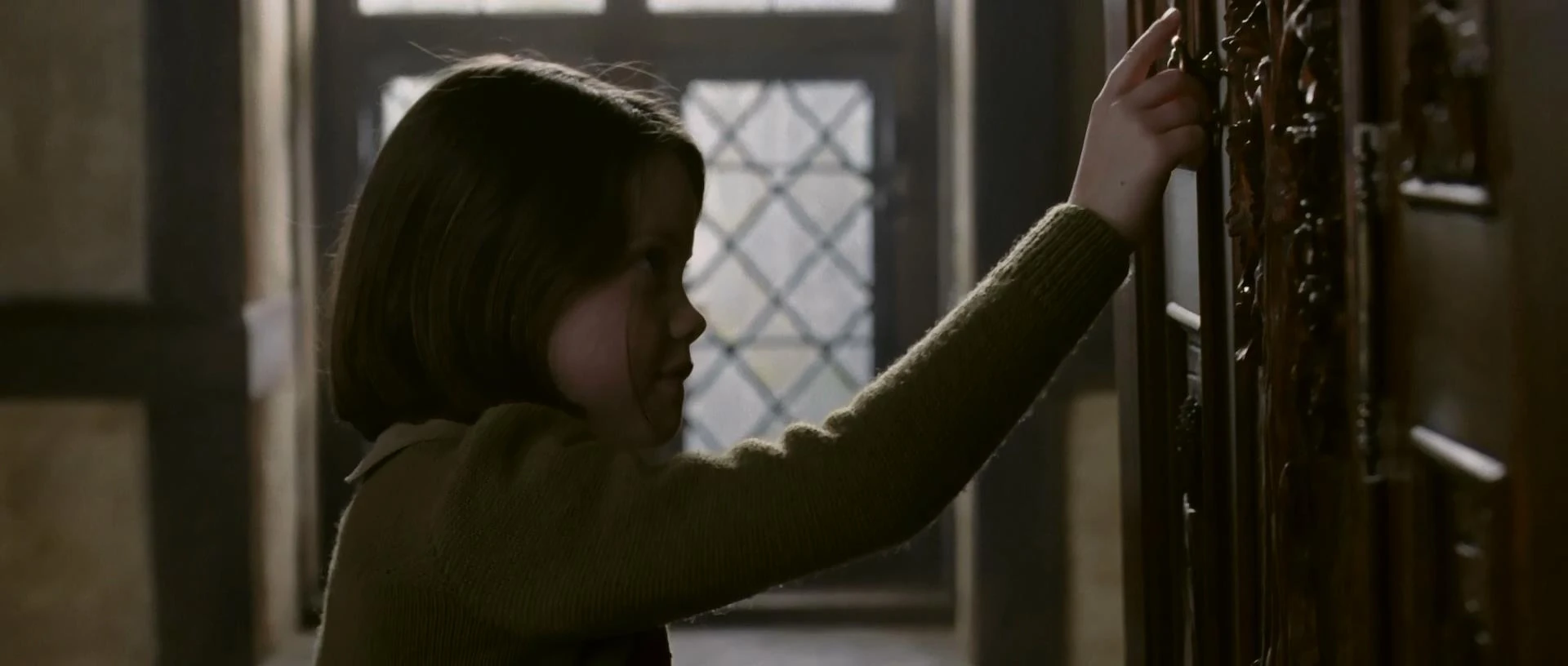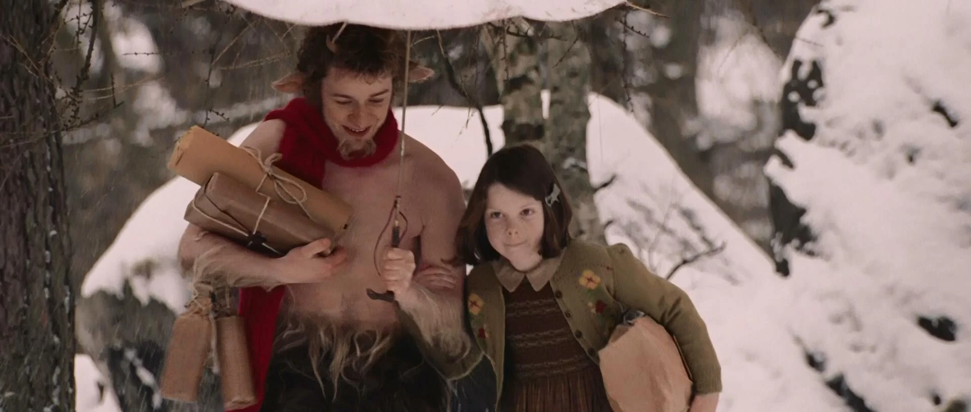В начале Второй Мировой Войны Люси вместе со своей сестрой и братьями были отправлены в дом старого профессора, располагавшийся далеко от Лондона. Странный вид заросшего бородой профессора и огромный дом с многочисленными комнатами и коридорами, немного напугал Люси, но затем когда Питер предположил, что они увидят тут различных животных, она немного успокоилась. На следующий день лил дождь, и дети отправились исследовать дом. В одной из комнат Люси увидела платяной шкаф. Она не удержалась и залезла внутрь, чтобы погладить мех. Девочка забралась поглубже, но к её удивлению задней стенки всё не было, и наконец она вышла на лесную полянку. Люси оглянулась назад, чтобы удостовериться, что дверца шкафа по-прежнему открыта, и направилась к источнику света вдали. Подойдя к нему, она удивилась ещё больше, ведь перед ней оказался настоящий фонарный столб, стоявший посреди леса.