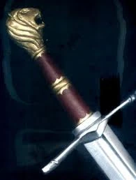 The pommel and hilt of Rhindon as portrayed in the Disney films.