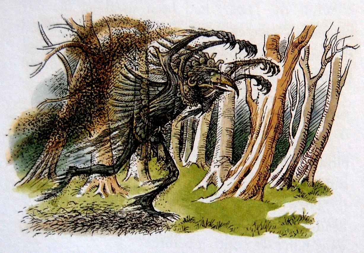 "At first glance you might have mistaken it for smoke, for it was grey and you could see things through it. But the deathly smell was not the smell of smoke. Also, this thing kept its shape instead of billowing and curling as smoke would have done. It was roughly the shape of a man but it had the head of a bird; some bird of prey with a cruel, curved beak. It had four arms which it held high above its head, stretching them out Northward as if it wanted to snatch all Narnia in its grip; and its fingers—all twenty of them—were curved like its beak and had long, pointed, bird-like claws instead of nails. It floated on the grass instead of walking, and the grass seemed to wither beneath it."